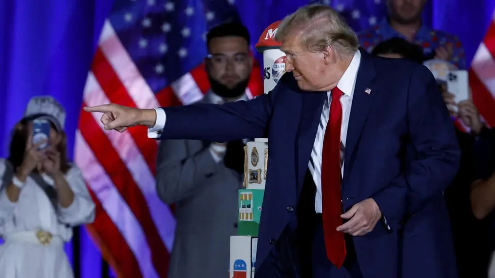 Donald Trump a fêté son anniversaire lors d'un grand raout, vendredi 14 juin, dans une gigantesque salle de bal, tout proche de Mar-a-Lago, sa luxueuse résidence en Floride. Après un « joyeux anniversaire » chanté par la foule, un gâteau d'anniversaire installé près de de son pupitre, Donald Trump a, pendant une heure de discours, utilisé sa rhétorique incendiaire habituelle pour viser les migrants et surtout son adversaire Joe Biden qui, selon le républicain, « s'endort à chaque événement ».